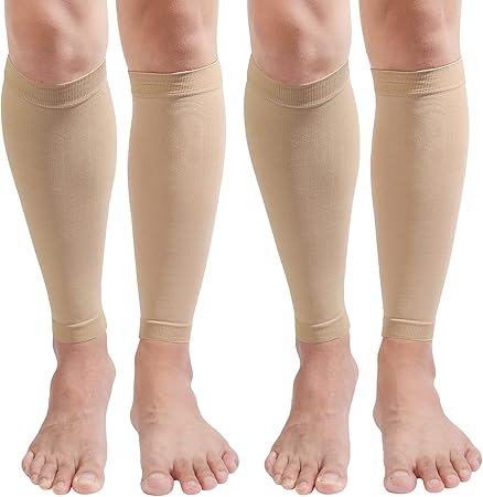 Amazon Com Mgang Calf Compression Sleeve 2 Pairs 20 30mmhg Leg Compression Socks Unisex For Pain Relief Swelling Edema Maternity Varicose Veins Shin Splint Nursing Travel Beige S M Everything Else